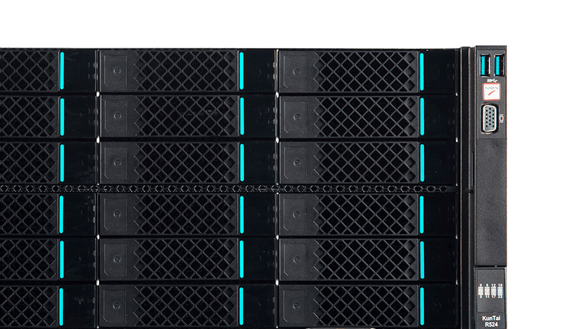 KunTai R524 存储型服务器是玖鼎数码基于鲲鹏处理器推出的新一代 ARM数据中心服务器。。。。主要面向存储业务,,,,具有海量存储、、、高性能、、、、低功耗以及易扩展的特点,,适合为大数据分析、、、软件定义存 储等应用场景的工作负载进行髙效加速。。。。